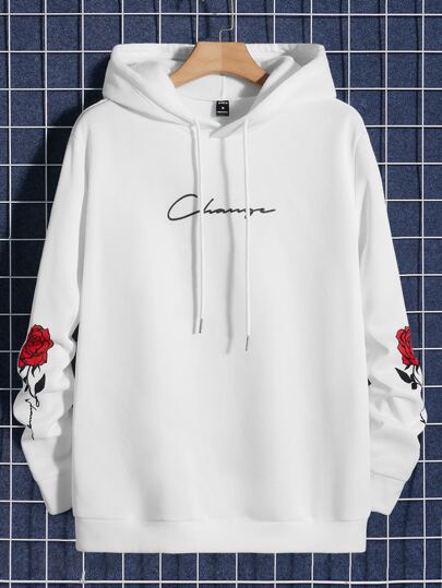 Manfinity VCAY Hombres Capucha con estampado floral y letra con cordón - Blanco - Añade 1