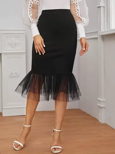 Modelyn Falda bajo de cola de pez con malla - Negro - Añade 1