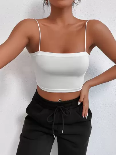 SHEIN PETITE Top de tirantes corto unicolor delgado - Blanco - Añade 5