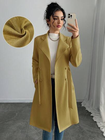 SHEIN PETITE Chaqueta regular de longitud media de unicolor elegante de ante sintético para mujer - Verde Oliva - Añade 3