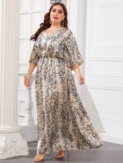 Modelyn Vestido de satén con patrón de piel de serpiente de manga campanuda - grande - Multicolor - Añade 4