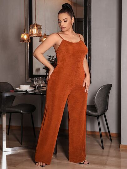 SHEIN SXY Mono de tirantes unicolor - Naranja Quemada - Añade 3