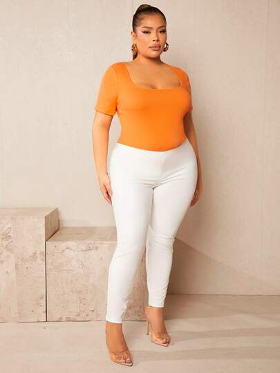 SHEIN SXY Camiseta unicolor de cuello cuadrado - Naranja - Añade 1