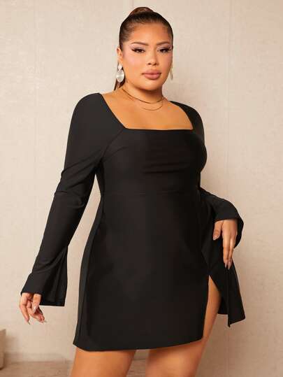 SHEIN SXY Vestido de cuello cuadrado bajo con abertura - Negro - Añade 2