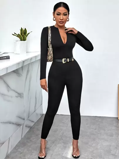 SHEIN SXY Mono unitard con cremallera delantera sin cinturón - Negro - Añade 1