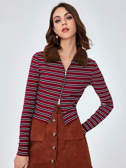 SHEIN Camiseta con estampado de rayas con cremallera - Multicolor - Añade 1