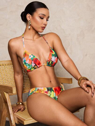 SHEIN Swim Set de 2 trajes de baño para mujer con estampado de leopardo y floral, novedades 2025 - Multicolor - Añade 1