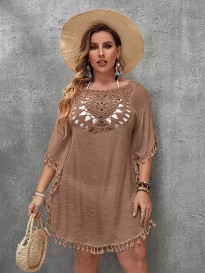 SHEIN Swim Curve Vestido cover up con puntada abierta - Marrón Mocha - Añade 3