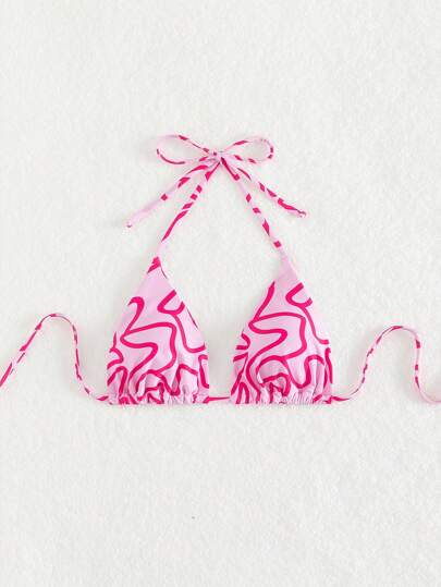SHEIN Swim Top bikini triángulo con estampado halter - Rosa - Añade 1