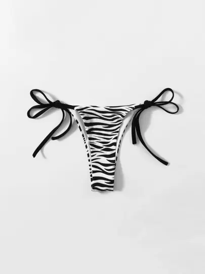 SHEIN Swim Tanga de bikini de rayas de cebra - Blanco y Negro - Añade 1