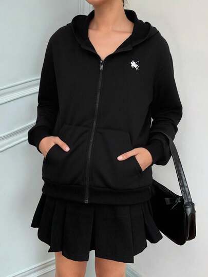 SHEIN Sudadera informal y cómoda para adolescentes con diseño bordado, versátil - Negro - Añade 1