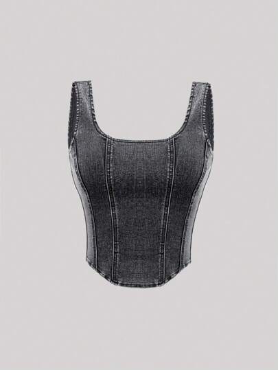 SHEIN Chica adolescente con cremallera trasera Tank Top en mezclilla - Negro - Añade 1