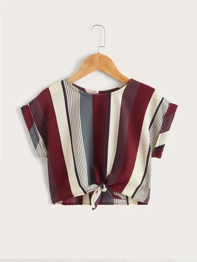 SHEIN Niñas Top de rayas de color combinado bajo con nudo - Multicolor - Añade 3