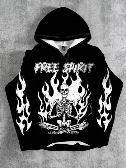SHEIN Sudadera holgada de manga larga con estampado abstracto minimalista informal para niño preadolescente - Multicolor - Añade 1