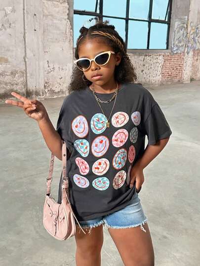 SHEIN Top de punto holgado de manga corta y cuello redondo, informal y deportivo, para niñas preadolescentes de talla extendida, primavera/verano - Gris Oscuro - Añade 7