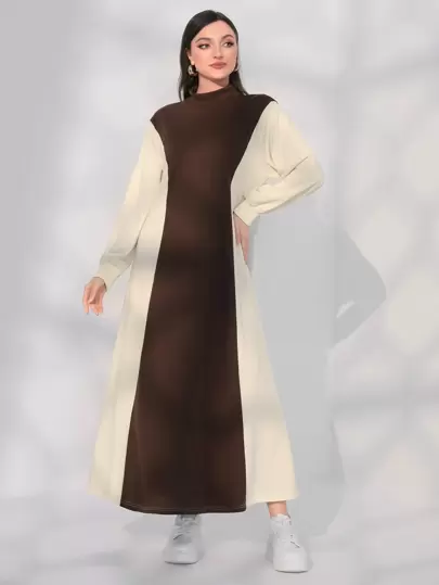 Mulvari Vestido sudadera de dos tonos de cuello alto de hombros caídos - Marrón Chocolate - Añade 1