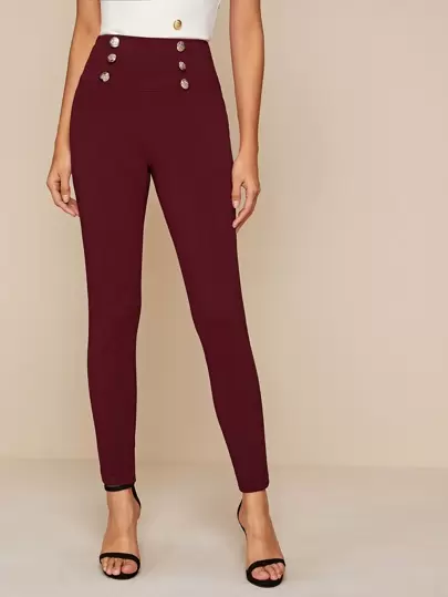 SHEIN Privé Pantalones ajustados con botones de cintura ancha - Burdeos - Añade 5