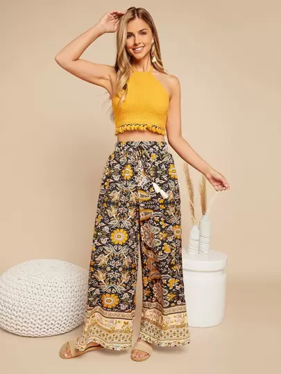 SHEIN VCAY Pantalones de pierna ancha con estampado floral - Multicolor - Añade 2