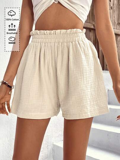 SHEIN VCAY Shorts de pierna ancha de cintura con volante - Beis - Añade 6