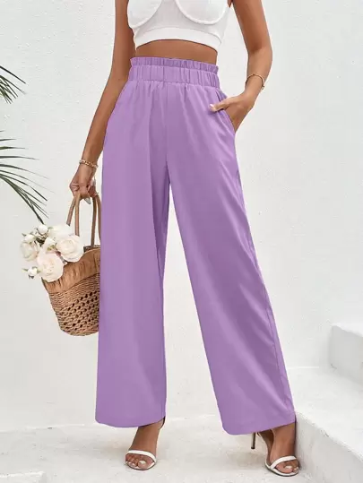 SHEIN VCAY Pantalones de pierna ancha de cintura con volante - Morado - Añade 5