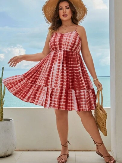SHEIN VCAY Vestido de tirantes de tie dye bajo con fruncido - Multicolor - Añade 2