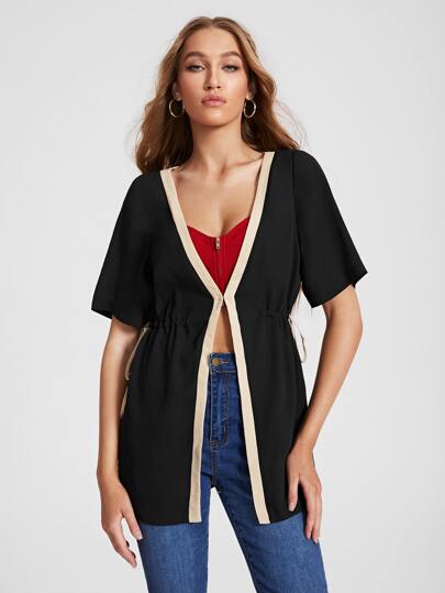 Aletia Blusa ribete en contraste de cintura con cordón & Top de tirantes - Negro - Añade 5