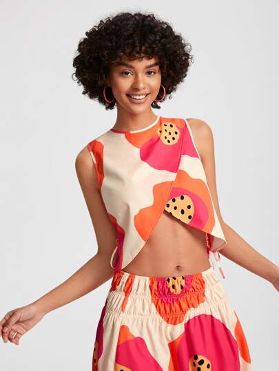 VALERIA GALIPOLI Camisa crop con estampado floral con abertura con nudo lateral - Multicolor - Añade 5