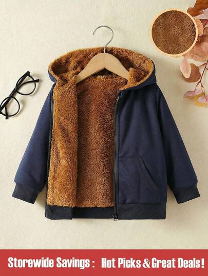 SHEIN Chico joven Cazadora con cremallera con forro térmico con capucha - Azul Marino - Añade 2