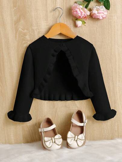 SHEIN Leap Crew Suéter corto elegante con cuello redondo y cierre delantero de botones para niña, para otoño/invierno - Negro - Añade 1
