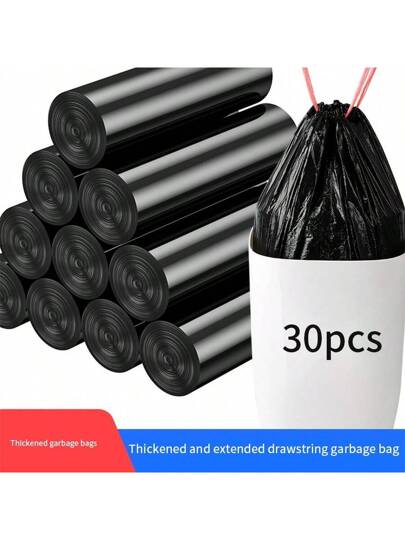 SHOULI 30 bolsas de basura gruesas, portátiles, gruesas, cerradas, desechables, grandes, bolsas de plástico para la cocina - Negro - Añade 1