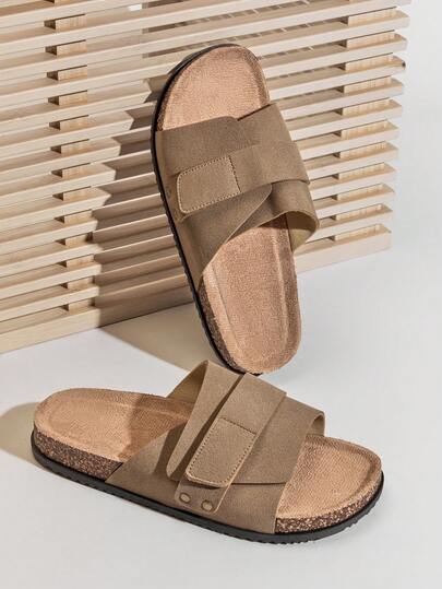 SHUZIA Sandalias de una banda ajustable de ante topo con plantilla acolchada para hombres #QuietLuxury - Minimalistas, versátiles y cómodas - Beis - Añade 1