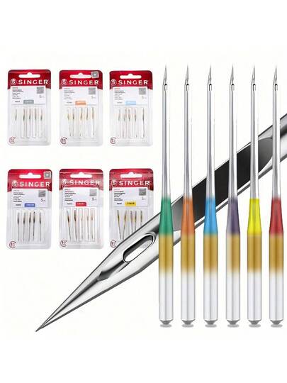 Agujas universales para máquina de coser SINGER para el hogar, 5 piezas/paquete - Agujas para tela elástica 2045, surtido de tamaños 10/12/14/16/18, de acero inoxidable duradero, costura suave para telas elásticas, costura DIY, confección de prendas, proyectos de costura de primavera y manualidades navideñas - Multicolor - Añade 17