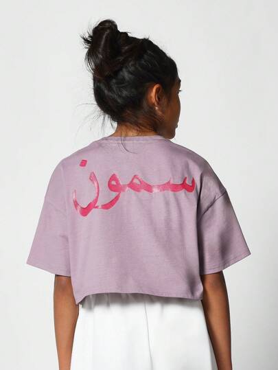 SUMWON Camiseta crop fit para niños con estampado brillante en la espalda - Morado - Añade 1