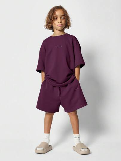 SUMWON Conjunto de dos piezas premium oversize para jóvenes, ropa deportiva y casual a juego, pantalones cortos con cordón, atuendo de entrenamiento para verano, primavera y otoño - Burdeos - Añade 2