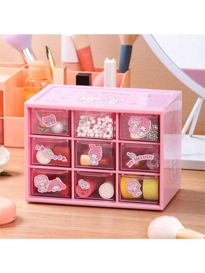Miniso (1 pieza) Caja de almacenamiento de cajones de cuadrícula de nueve personajes de Sanrio - Rosa - Añade 1