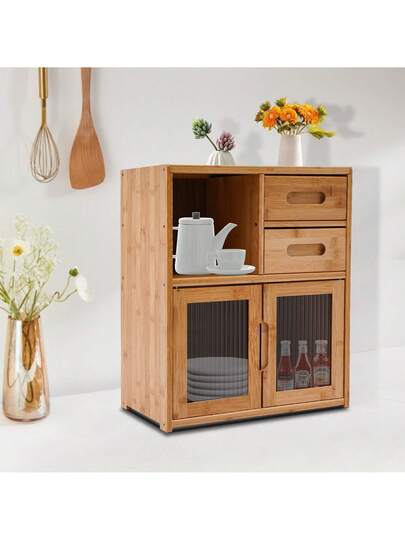 Aparador de despensa de cocina, gabinete de almacenamiento con cajón y puertas, gabinete de plataforma abierta, estantería de armario de montaje rápido, 16.5 pulgadas de largo, para comedor, pasillo, sala de estar, oficina, color de madera - Marrón - Añade 2