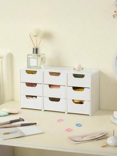 Caja de almacenamiento pequeña de escritorio mini, caja de cosméticos de plástico ahorra espacio, organizador de muebles de oficina, joyería de artesanía, cajón, estuche de embalaje, con 3 cajones para cosméticos y accesorios para mujeres, artículos esenciales de viaje, vuelta al colegio, almacenamiento de dormitorio - Blanco - Añade 7