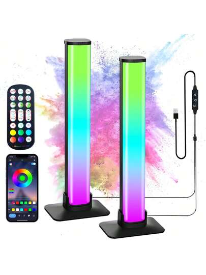 2 tiras de luces LED inteligentes, RGB con sincronización de música, control inalámbrico por infrarrojos y aplicación, alimentadas por USB, no impermeables, lámpara de escritorio, iluminación dinámica, adecuadas para juegos, dormitorio, decoración del hogar, fiestas y bodas, decoración de cumpleaños, accesorios de oficina, regalo ideal para el Día de San Valentín - RGB - Añade 2