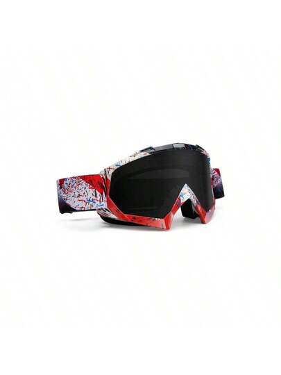Gafas de motocicleta, gafas de motocross, gafas a prueba de viento y polvo para ATV, gafas de carreras resistentes a los arañazos, gafas de esquí, gafas de protectoras con marco de resina de PU negro y lentes de colores - Marco rojo + lente gris - Añade 5