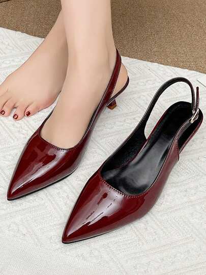 Nuevos tacones altos de mujer color borgoña de punta cerrada con correa de tobillo, tacón de aguja, versátiles - Burdeos - Añade 1