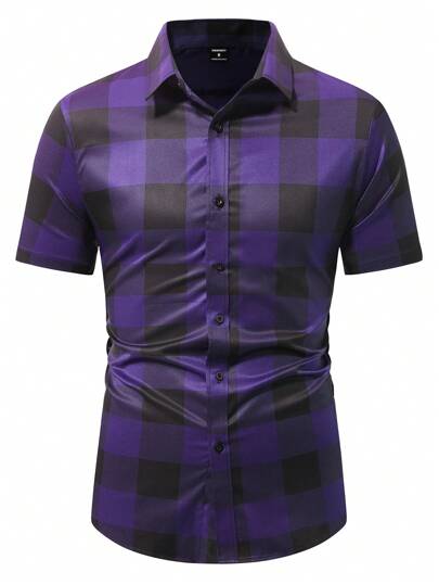 Manfinity Homme Camisa casual de manga corta de moda simple para uso diario - Multicolor - Añade 2