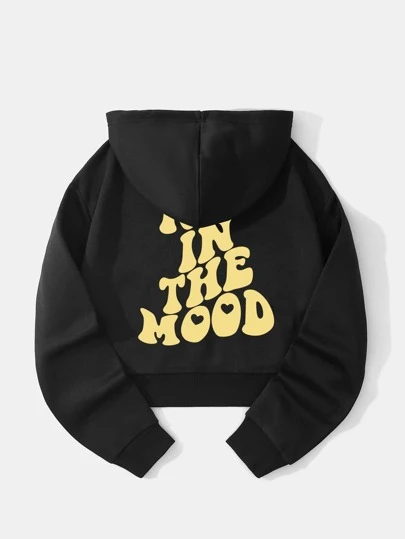 SHEIN EZwear Capucha corta con estampado de slogan con forro térmico con cordón - Negro - Añade 3