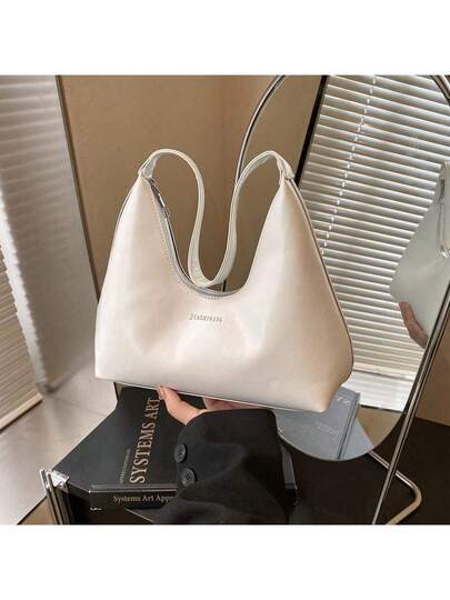 Bolso de nicho para mujer 2025 Nuevo bolso casual personalizado de hombro simple de debajo del brazo Bolso de mano de media luna de moda - Beis - Añade 1