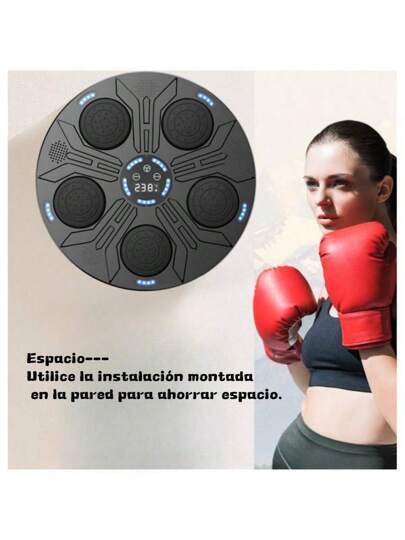 Máquina Inteligente De Boxeo Incluye Guantes De Música Bluetooth Para Montaje En Pared Boxeador Facil De Usar Solo Conectate A Bluetooth y Pon Tu Musica Favorita LEODY - Negro - Añade 5