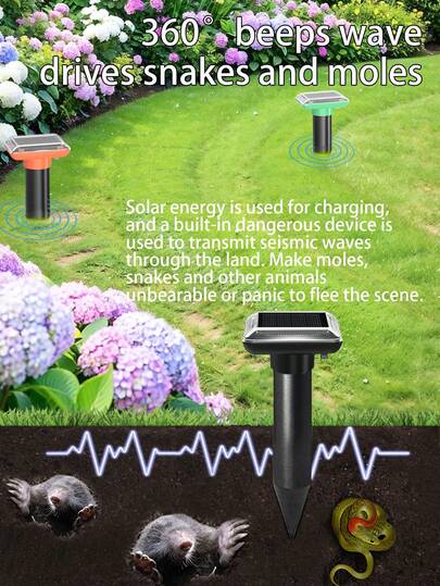 Repelente ultrasónico solar - Repelente de plagas para exteriores contra serpientes, topos, y gofos, estaca resistente a la intemperie para uso en jardín, granja y campo - Multicolor - Añade 14