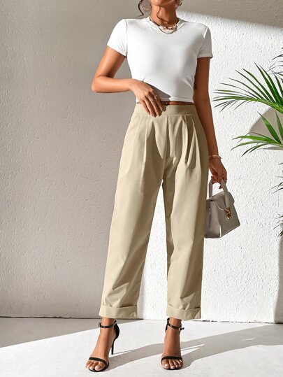 Chiquease Pantalones unicolor con diseño de fruncido bajo de doblez - Albaricoque - Añade 1