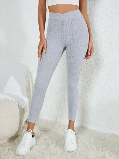 SHEIN Essnce Leggings recropdos unicolor cintura V - Gris - Añade 4