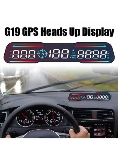 Velocímetro Reloj Accesorios para automóviles Recordatorio de alarma digital inteligente Medidor G19 HUD Pantalla de cabeza GPS de coche Brújula Medidor KM/H MPH - Negro - Añade 1