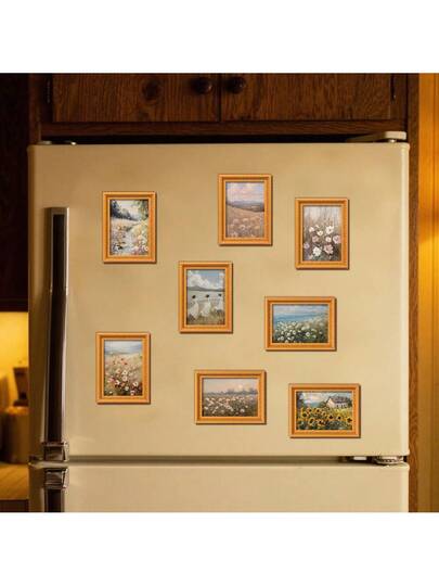 Imanes de refrigerador con estilo de pintura al óleo de primavera, con tema de flores margaritas, vestido blanco para niñas, artesanía de madera con imanes que se pueden adherir a refrigeradores y artículos que contienen hierro, haciendo que la decoración del hogar sea hermosa, elegante y sencilla - Pegatina magnética de pintura al óleo - Añade 8