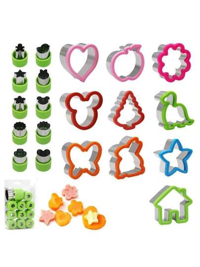 Cortador de sándwich de acero inoxidable, molde de pan tostado con forma de dinosaurio y conejo, cortadores de galletas de vegetales, molde de cocción DIY, herramienta para el almuerzo Bento de niños - Multicolor - Añade 24